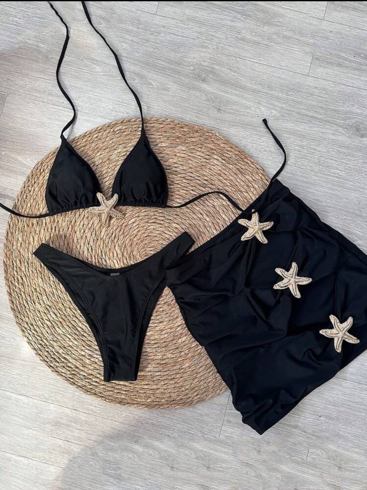 traje de baño tres piezas falda con tres estrellas doradas